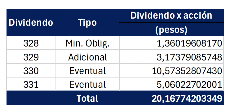 DIVIDENDOS N°328 (MÍNIMO OBLIGATORIO), N°329 (ADICIONAL),